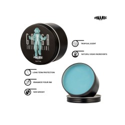 Ganga Glide x Dynamic Tattoo Balm, dövme uygulamasının her aşamasında kullanılmak üzere geliştirilmiş profesyonel bir bakım ürünüdür. Doğal ve vegan içeriğiyle cildi korur, besler ve dövmenin uzun süre canlı kalmasına yardımcı olur.