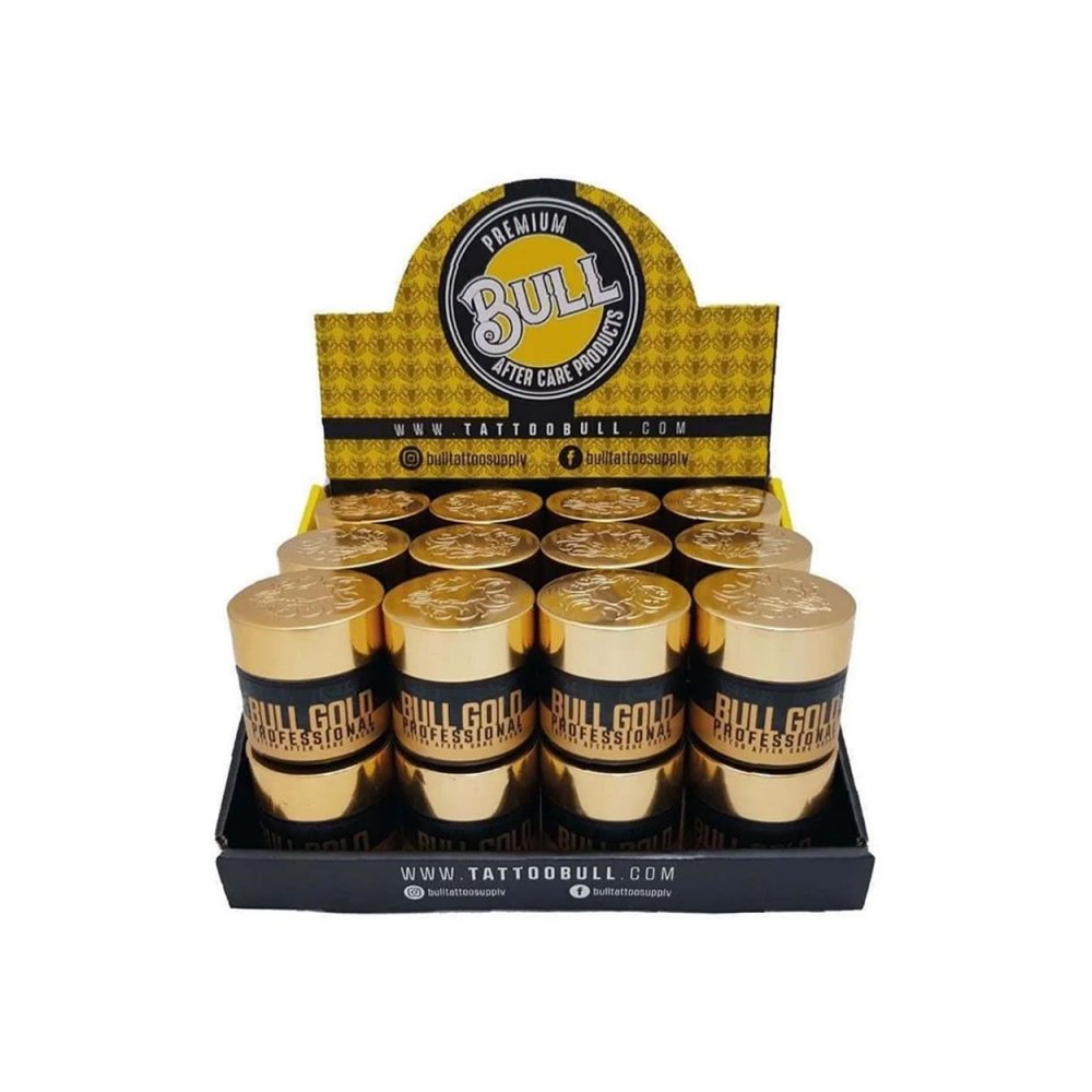 Bull Gold Professional Tattoo After Care Cream, dövme yapılan bölgeyi yoğun şekilde nemlendirmek ve dövme renklerinin daha canlı görünmesini desteklemek amacıyla geliştirilmiştir. İçeriğinde bulunan kantaron yağı, shea butter ve zeytinyağı gibi bitkisel bileşenler sayesinde cildi besler, yatıştırır ve profesyonel düzeyde bakım sağlar. 24’lü paket seçeneği, stüdyolar ve profesyonel kullanım için idealdir.